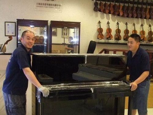 3、搬運(yùn)鋼琴有技巧,如果鋼琴需要搬運(yùn)上樓,需派四至五人搬運(yùn),兩人在下,三人在上,用寬布帶挎在肩上兜住鋼琴的車腳。同時(shí)用手抓住琴背的把手和鍵盤(pán)底下(不能拉鋼琴的腿),抬起鋼琴一鼓作氣搬上一層樓再休息。特別要注意的是,鍵盤(pán)的一側(cè)不能碰扶手,車腳不能碰樓梯。到一層樓面拐彎時(shí)要當(dāng)心碰撞、調(diào)整好方向然后再抬起往上搬。進(jìn)房門(mén)時(shí),也要當(dāng)心蹭著門(mén)框,保證最后安全地把鋼琴放到安排好的位置上。若需把鋼琴搬運(yùn)上廂式貨車,由于立式鋼琴的重心靠近后背,琴后背的人數(shù)要比琴前的人多,往車上抬時(shí),前面三個(gè)人,后面兩個(gè)人,后面的人抬起頂住,前面的人抬鋼琴的底部,抬起放到車上,然后上去一個(gè)人往車箱上拉,后面的人往車箱內(nèi)推,這樣就能把琴搬上車了。